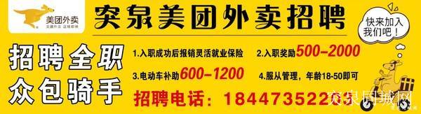 • 美团外卖招聘:招聘全职,众包骑手。